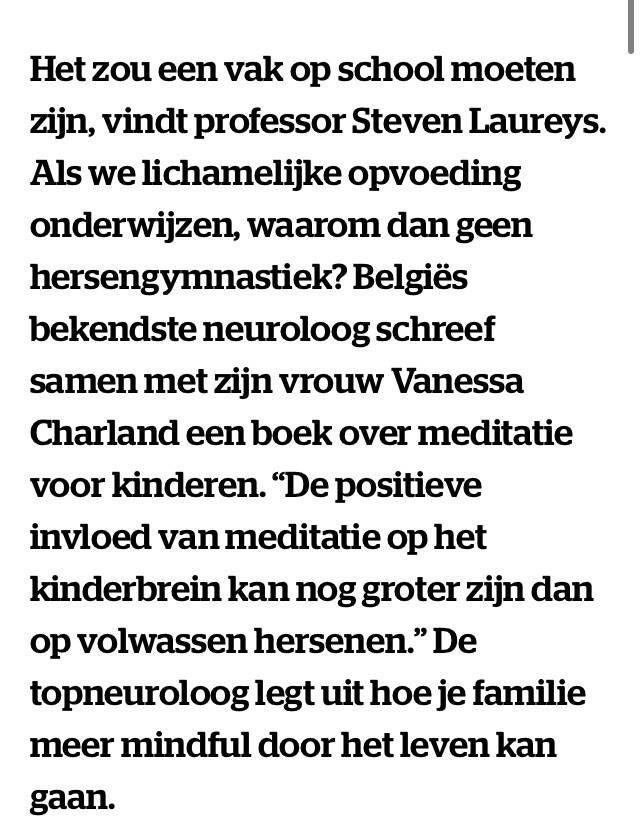 Mediteren kan je leren! Van jongsaf aan. Het boek "ZACHT" van Steven Laureys & zijn vrouw is een aanrader.